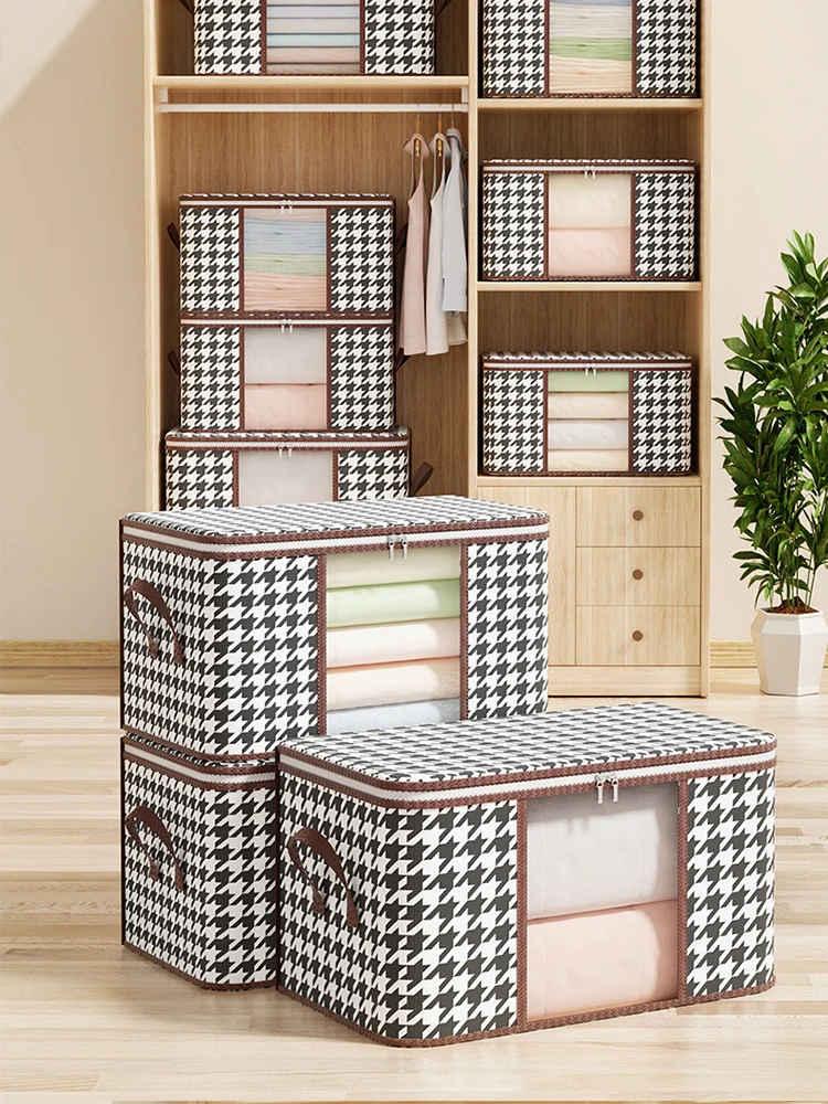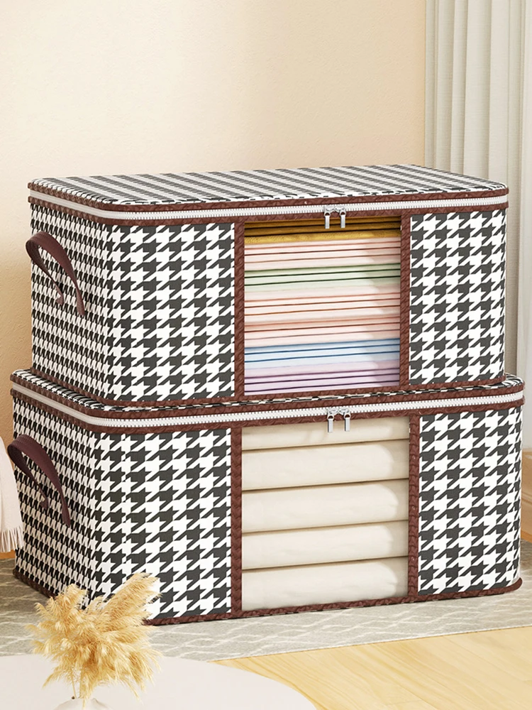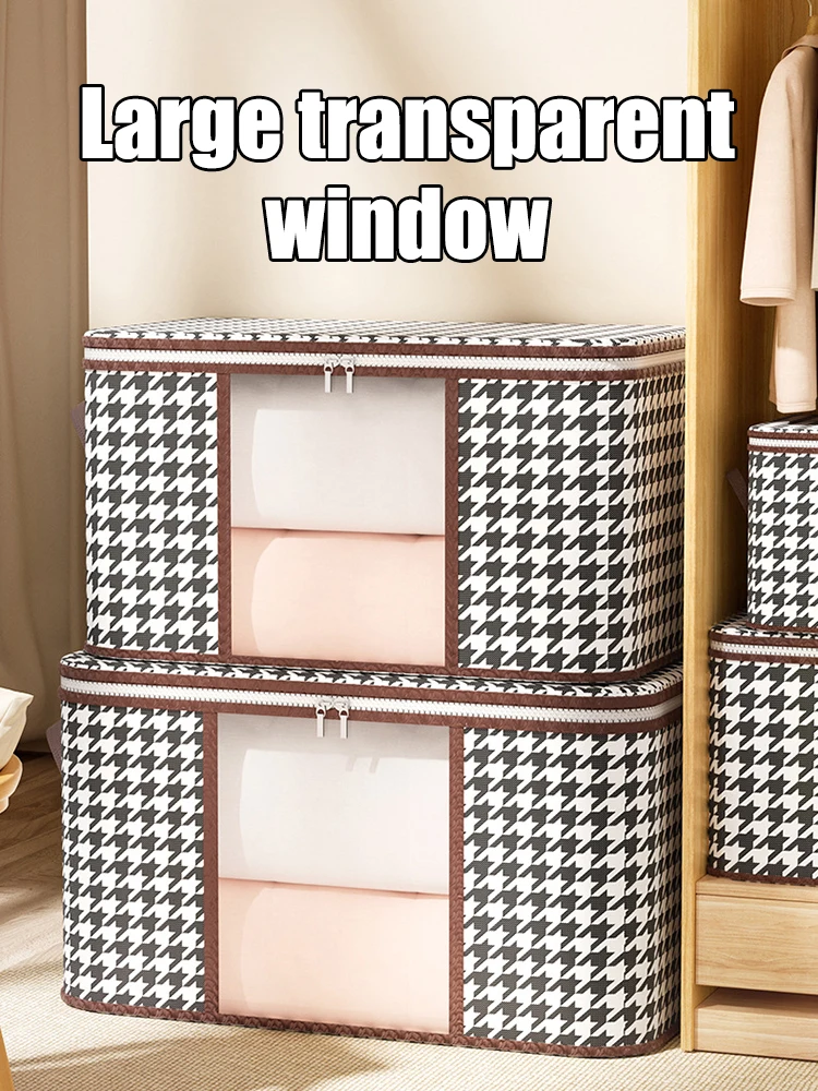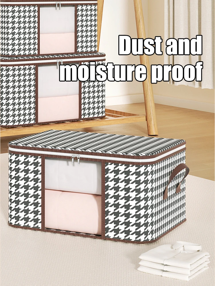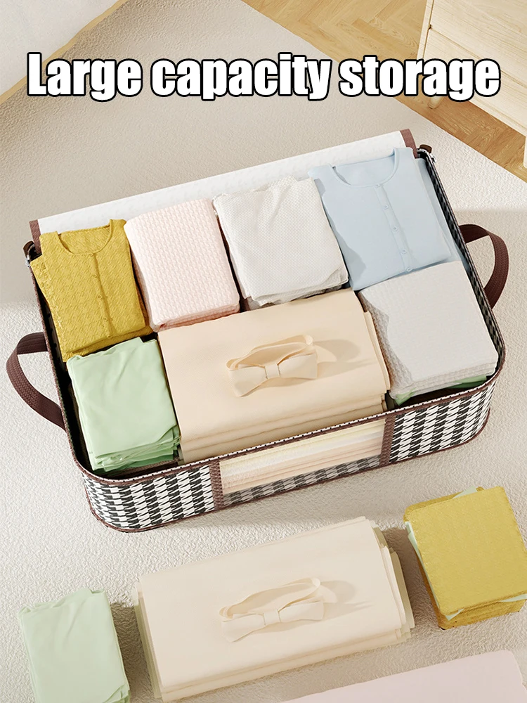 Foldable Large-Capacity Storage Box with Handles – Visible Dustproof Clothes Organizer