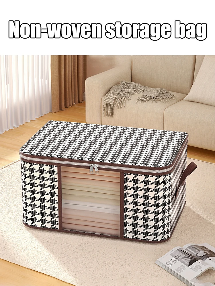 Keep your home effortlessly organized with this stylish and practical storage bag designed to protect and store your everyday essentials. Crafted from durable non-woven fabric, it offers a spacious interior ideal for clothing, quilts, bedding, and seasonal items while helping shield them from dust, moisture, and everyday wear. The reinforced structure provides added stability, allowing the bag to hold its shape even when fully packed, while the smooth zippered closure ensures secure storage with easy access whenever you need it. Its foldable, space-saving design makes it perfect for wardrobes, shelves, or under-bed storage, combining functionality with a clean, modern look that fits seamlessly into any living space.